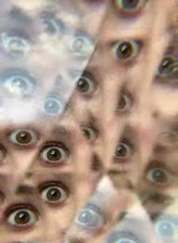Another aside: ‘making faces’ is a sort of tautology – ‘face’ probably has roots in the Latin ‘facere’, ‘to make’. So, like Sahara Desert means ‘desert desert’, ‘making faces’ means ‘making making’. Or reflecting reflecting. The same thing twice in two ways. Tautologies are interesting in the current context because they enact a collision between sameness and difference, another kind of ‘simultaneous looking’ that’s important to the poem which follows this sort of intro/essay/thing.